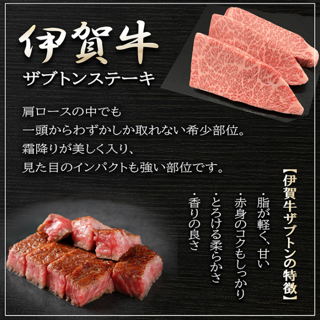 ほとんどが地元で消費される希少な伊賀牛のハネシタ(サブトン)ステーキ 150gx2枚(約300g) です。